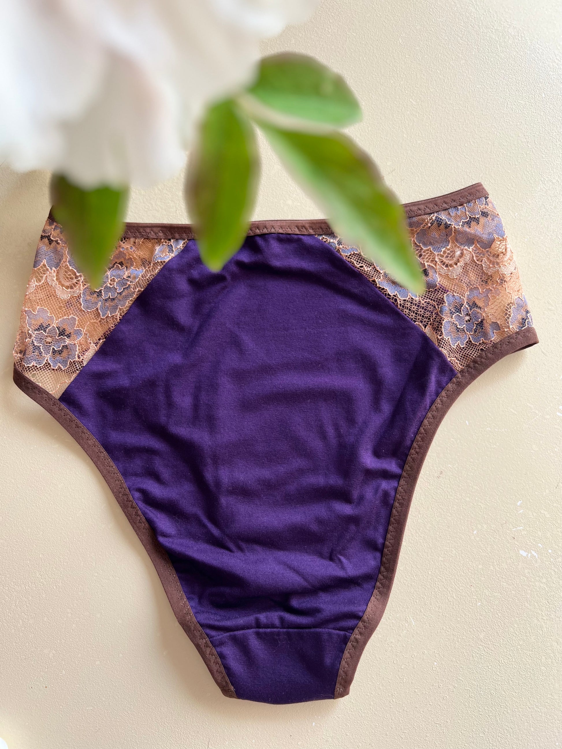 Tumši lillā Opanties no TENCEL™ trikotāžas ar pārstrādātas mežģīnes ziedu rakstu