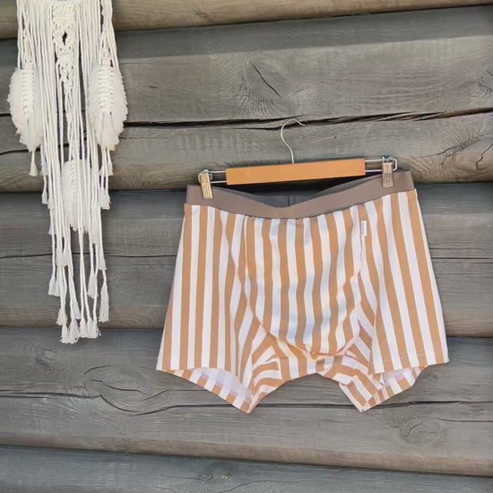 Organiskās kokvilnas vīriešu bokseršorti – baltas ar brūnām svītrām I 2 veidi